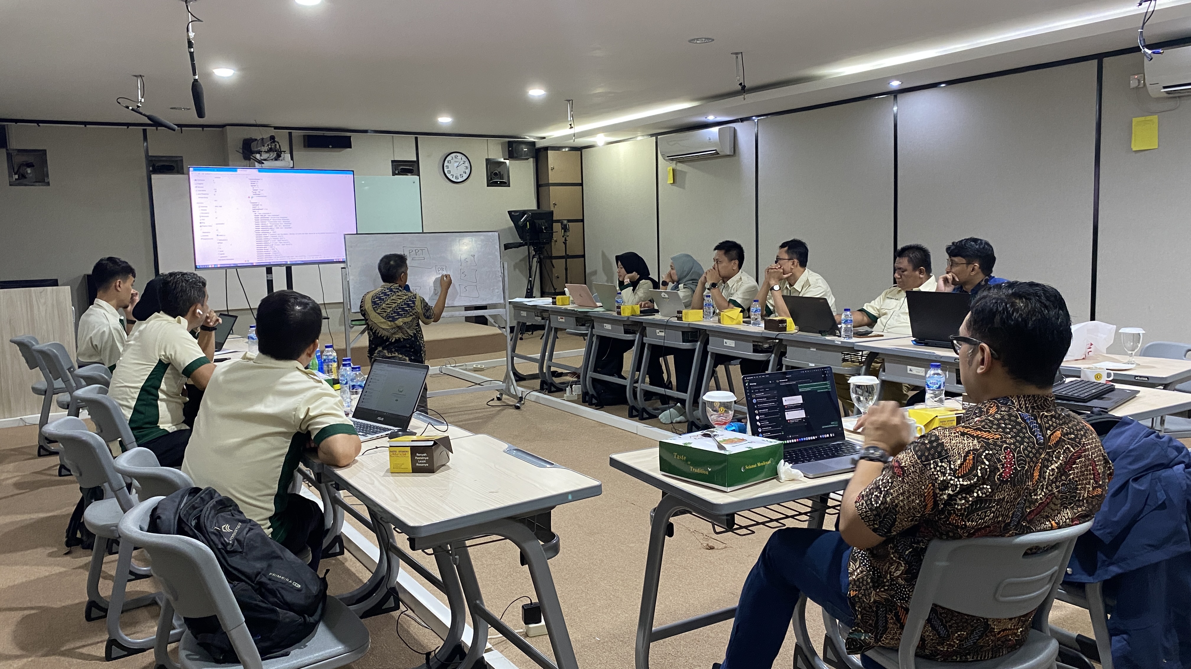 Kegiatan dilanjutkan dengan sesi praktik, di mana peserta melakukan konfigurasi Metabase, pengolahan data, pembuatan dashboard, serta pengoperasian UCS. Sesi ini berlangsung interaktif, dengan banyak pertanyaan dari peserta seputar kendala teknis, baik terkait UCS, Metabase, maupun sistem perpustakaan lainnya—termasuk solusi untuk pengaturan denda pemustaka pada sistem SLiMS.